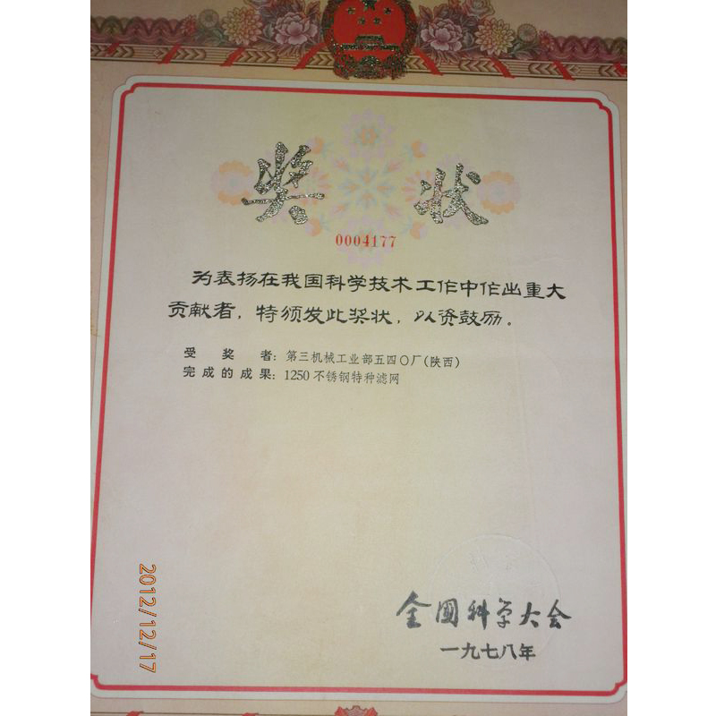 1978年科技貢獻(xiàn)獎(jiǎng)