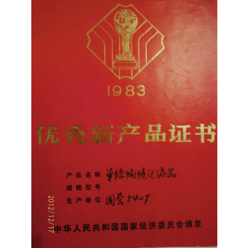 1983年優(yōu)秀新產(chǎn)品獎(jiǎng)